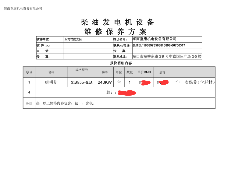 我司為東方消防支隊維保一臺康明斯發(fā)電機(jī)組