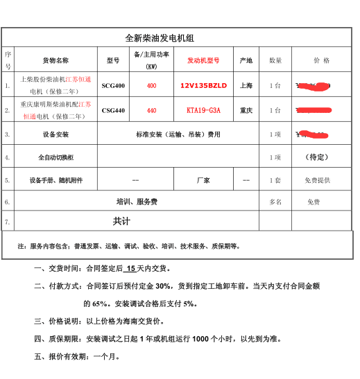 海南重康為福山風情酒店供應柴油發(fā)電機組