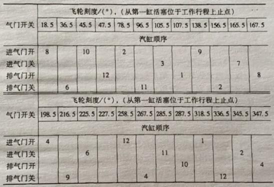 表5-7 12V(KTA19 系列、KTA50系列)柴油機(jī)配氣定時(shí)檢查表